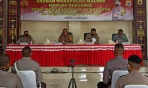 AMBON,MRNews.com,- Sebelum dilaksanakannya upacara puncak 73 tahun Brimob di Markas Komando Satuan Brimob Polda Maluku, Tantui, Rabu (14/11), Kakor Brimob Polri yang diwakili Kasat Brimobda Maluku, Kombes Pol. M. Guntur, S.I.K, MH., memberikan penganugrahan Warga Kehormatan Korps Brimob dengan penyematan Baret, Jaket dan PIN khas kesatuan Korps Brimob Polri kepada Bupati Maluku Tenggara Barat, Petrus Fatlolon dan Bupati Seram Bagian Timur, Mukti Keliobas.