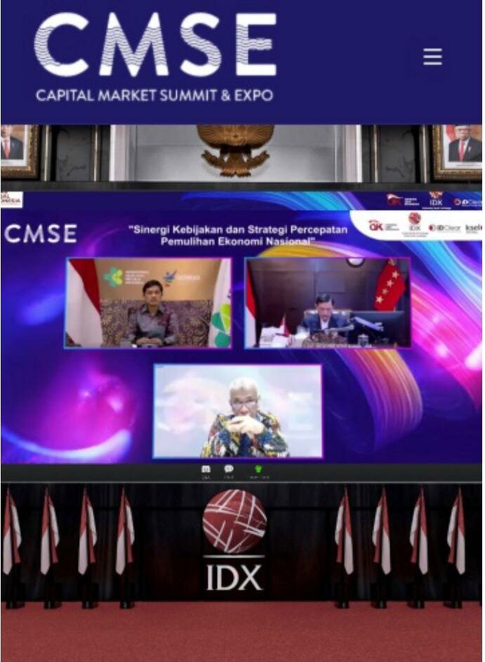 Sejalan dengan itu, Otoritas Jasa Keuangan (OJK) bekerjasama dengan SRO yaitu PT Bursa Efek Indonesia (BEI), PT Kliring Penjaminan Efek Indonesia (KPEI), dan PT Kustodian Sentral Efek Indonesia (KSEI) kembali menggelar Capital Market Summit & Expo (CMSE) 2021 secara virtual pada 14–16 Oktober 2021.