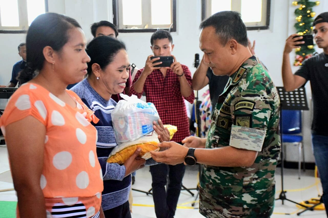 Di kesempatan tersebut, Danrem memberikan bantuan berupa 300 paket sembako kepada warga Kariu, yang merupakan kerjasama dengan Indomaret.