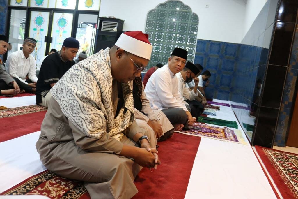 AMBON,MRNews.com,- Kapolda Maluku, Irjen Pol Lotharia Latif bersama sejumlah pejabat utama (PJU) melaksanakan shalat Idul Adha 1443 Hijriah bersama masyarakat di Masjid At-Taqwa, Aspol Tantui, Kota Ambon, Minggu (10/7/22).