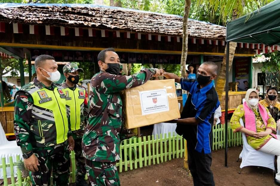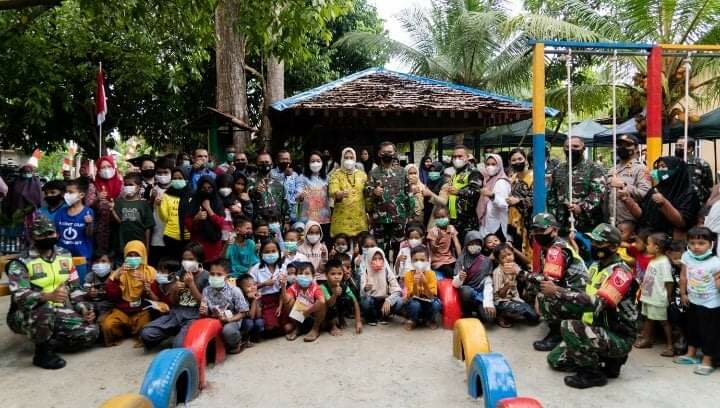 Disana, Jenderal Bintang Dua itu menyerahkan sejumlah bantuan seperti alat tulis, masker, dan buku pelajaran kepada anak-anak.