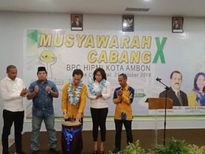 AMBON,MRNews.com,- Setelah menjadi calon tunggal, Yermia Padang pun secara resmi ditetapkan menjadi ketua umum BPC Himpunan Pengusaha Muda Indonesia (HIPMI) kota Ambon periode 2019-2022 melalui forum musyawarah cabang (Muscab) X BPC HIPMI kota Ambon di The City Hotel, Kamis (31/10/19) yang secara aklamasi menyetujui pencalonan Yermia. Bendahara umum BPD HIPMI Maluku itu pun berkomitmen siap bersinergi dengan pemerintah kota (Pemkot) kedepan.