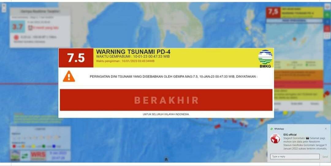 “Peringatan dini tsunami yang disebabkan gempa 7,5 SR dinyatakan berakhir per pukul 05.48 WIT,” kata Kepala BMKG Kelas II Ambon, Djati Cipto Kuncoro dalam siaran persnya, Selasa pagi.