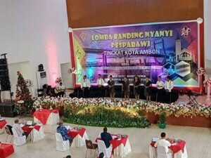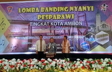 AMBON,MRNews.com,- Pesta Paduan Suara Gerejawi (Pesparawi) Tingkat Kota Ambon tahun 2019 bakal dilaksanakan selama dua hari Kamis-Jumat (12-13/12/19) di Gedung Baileo Oikumene, Ambon. Event rohani tiga tahunan itu dibuka Sekretaris Kota (Sekkot) Ambon A.G Latuheru mewakili Walikota Ambon. Empat dari lima kecamatan pun siap banding nyanyi sejumlah lagu pujian pada 10 kategori yang dilombakan dan berusaha merebut piala bergilir dari tangan juara tiga tahun lalu, kecamatan Nusaniwe.