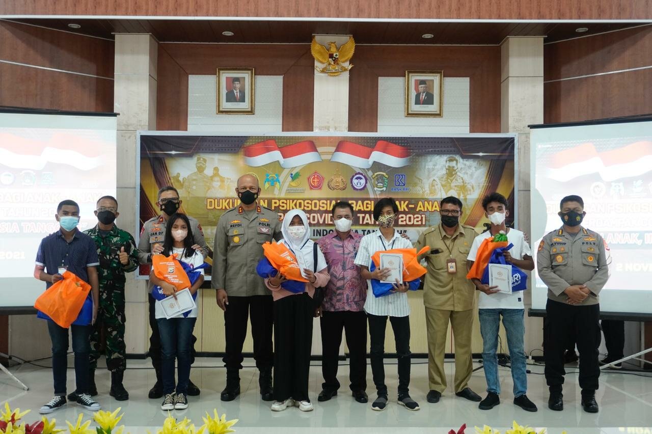 Dukungan psikososial kepada anak-anak yang terdampak pandemi covid-19 ini dibuka langsung Kapolri, Menteri Sosial, Menteri PPPA, dan yang mewakili Panglima TNI secara virtual, yang dipusatkan di Lapangan Lemdiklat Polri, Jakarta Selatan.