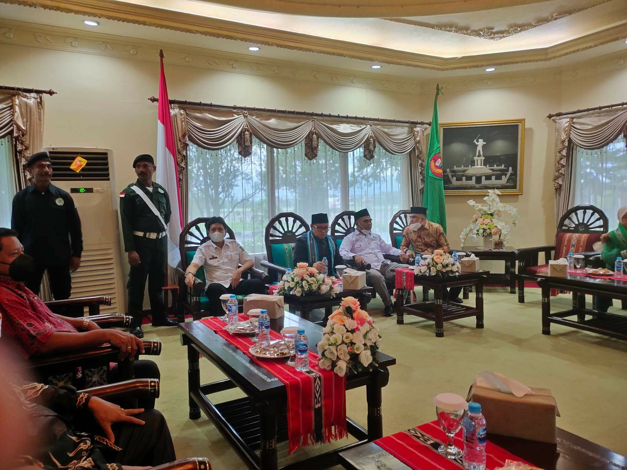 Tiba di bandara, Gus Muhaimin bersama rombongan menuju ruang VIP Bandara Pattimura disambut ketua DPW PKB Maluku, Basri Damis beserta kader partai dan Sekda Provinsi Maluku, Ir. Sadli Le Ketua DPRD Maluku, Lucky Wattimury.