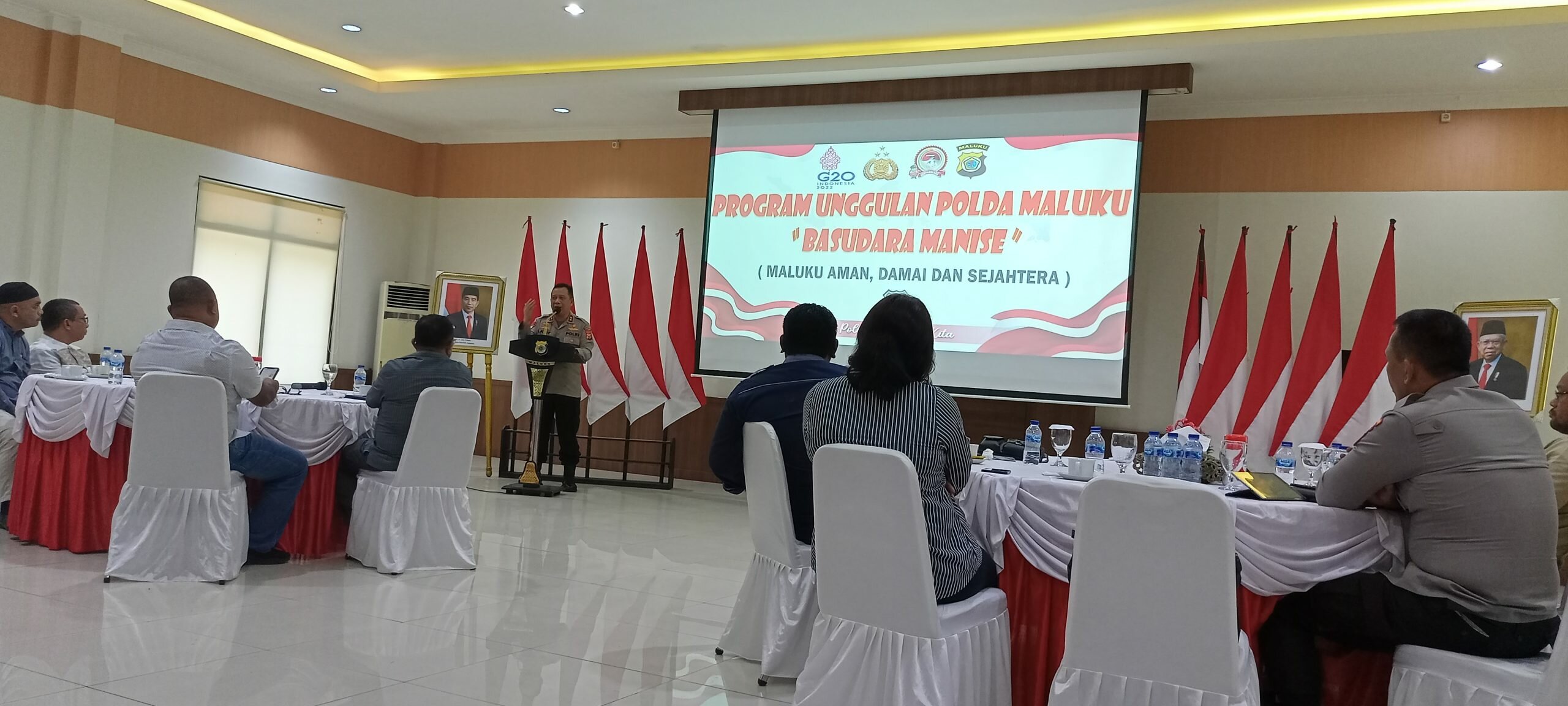 AMBON,MRNews.com,- Program bacarita basudara Manise (Maluku Aman, Damai dan Sejahtera) yang digagas Kapolda Maluku saat ini dikenalkan ke pimpinan media dan organisasi pers baik PWI Maluku, IJTI Maluku, AJI Ambon dan AMSI Maluku-Maluku Utara, Jum’at (10/6).